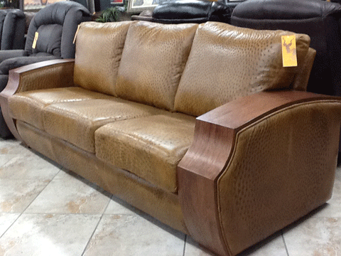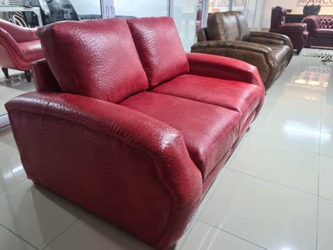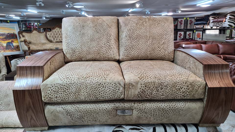 Genuine Ostrich Leather, Wallnut Arms (1.9m) 2-Seater Couch